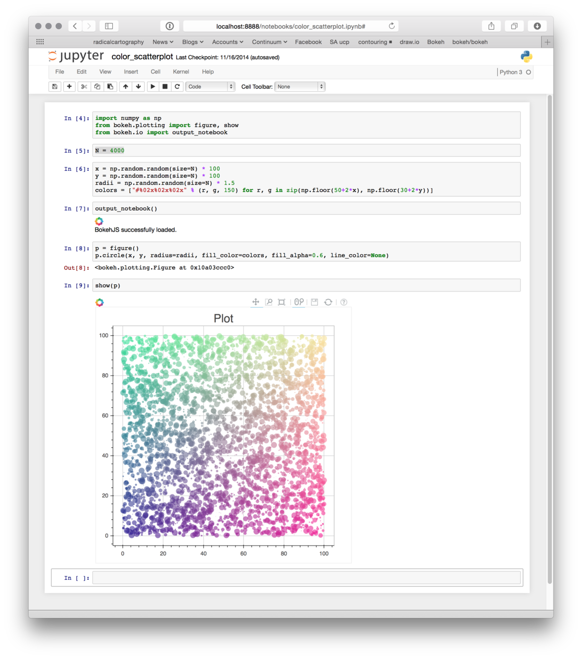 If you use Jupyter notebooks, call Bokeh’s output_notebook() function in your